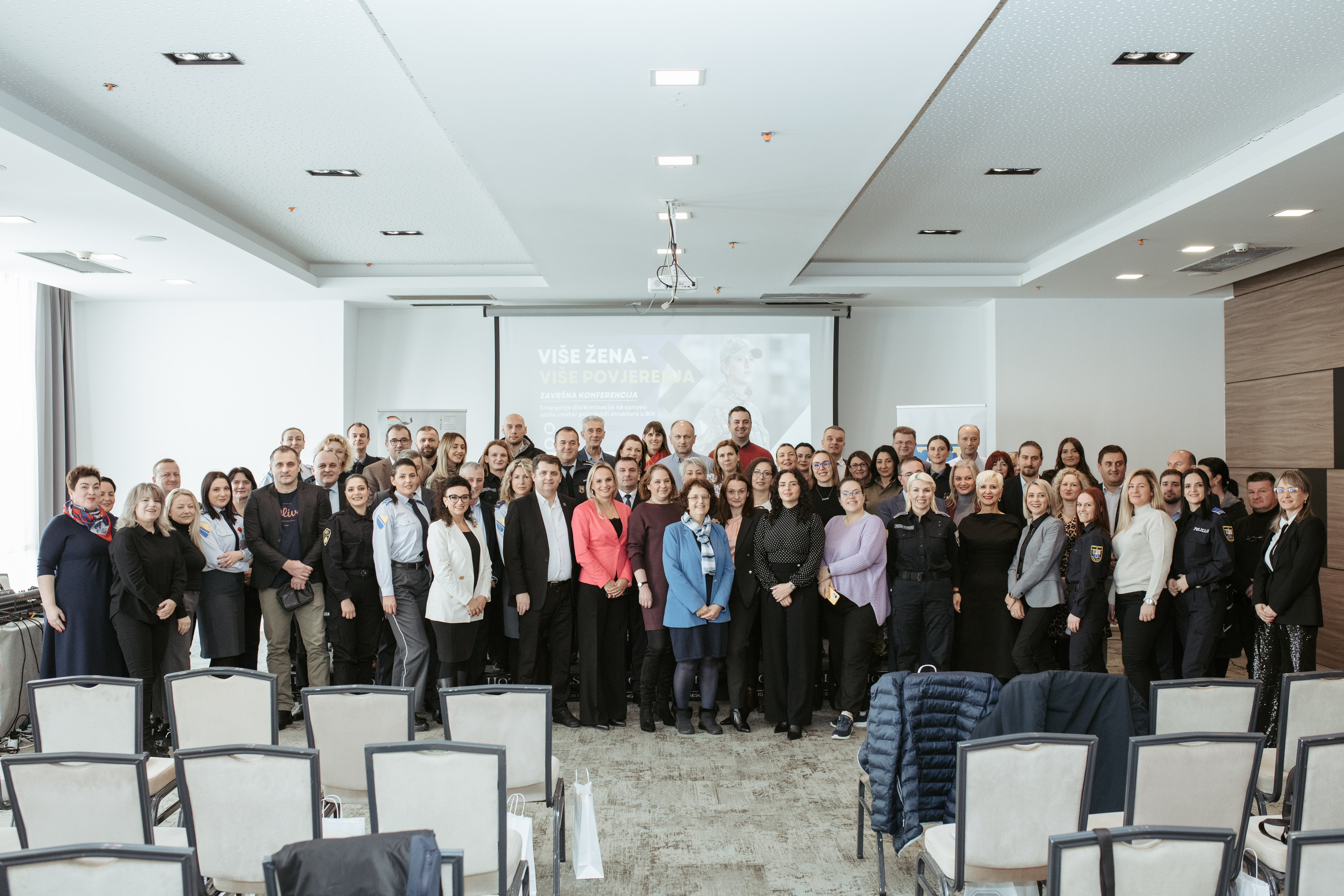 Jednogodišnji projekat koji je za cilj imao ukazati na važnost povećanja broja žena - policijskih službenica u policijskim strukturama u Bosni i Hercegovini te raditi na poboljšanju statusa i položaja žena unutar policijskih struktura, okončan je 20. decembra 2023. godine uspješnom završnom konferencijom koja je privukla interesovanje značajnog broja učesnika.